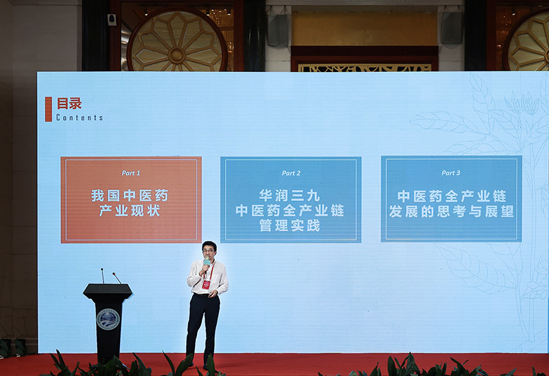 邱华伟以《传承精华、守正创新——中医药全产业链管理的思考与发展》为题,讲述了我国中医药产业现状、华润三九中医药全产业链管理实践、中医药全产业链发展的思考与展望。
