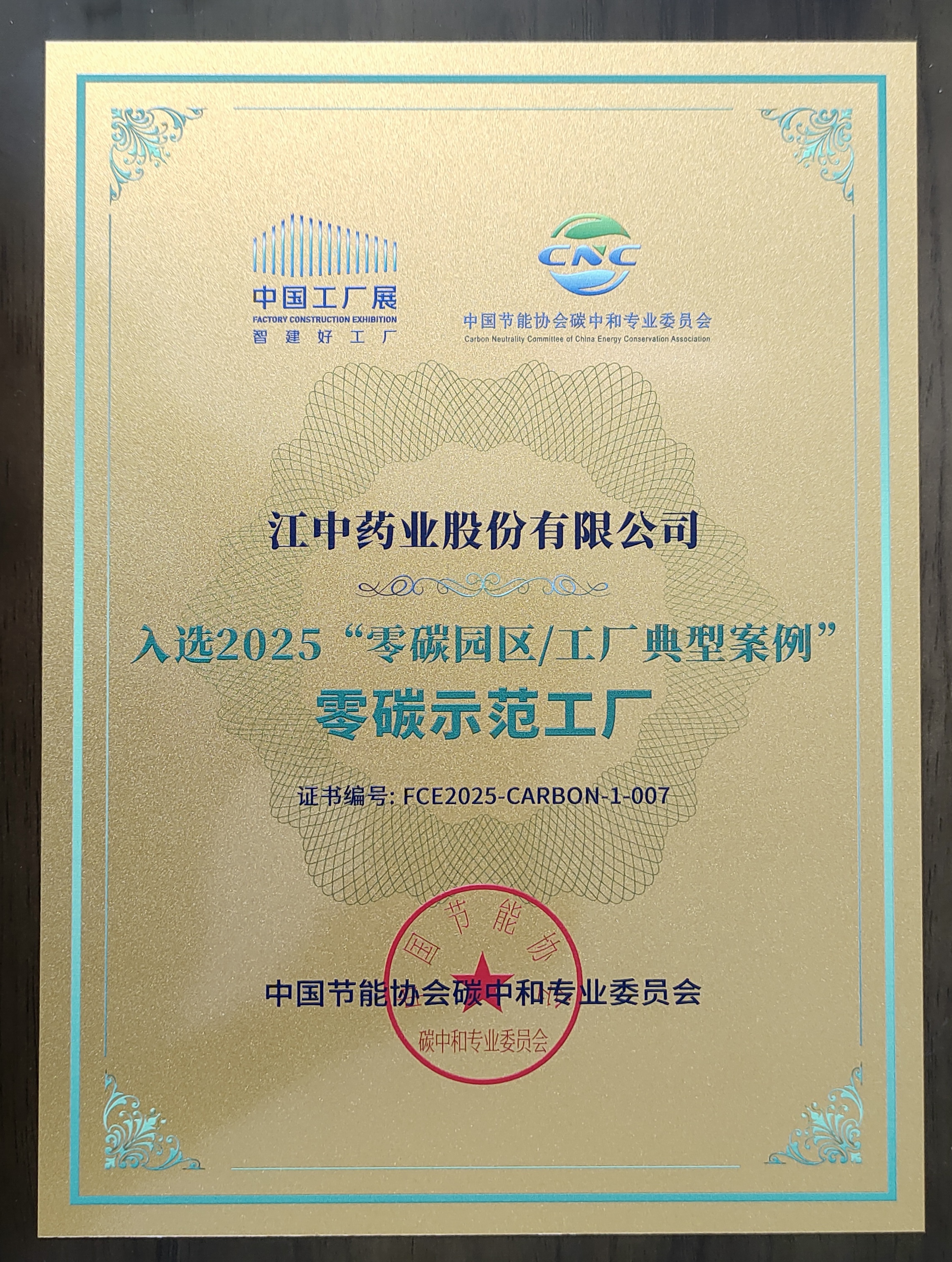 9月16日,由中国节能协会和中国工业报社联合主办的“2025国际工厂绿色低碳建设大会暨展览会”在杭州举行。会上,江中药业股份有限公司成功获评“零碳示范工厂”。