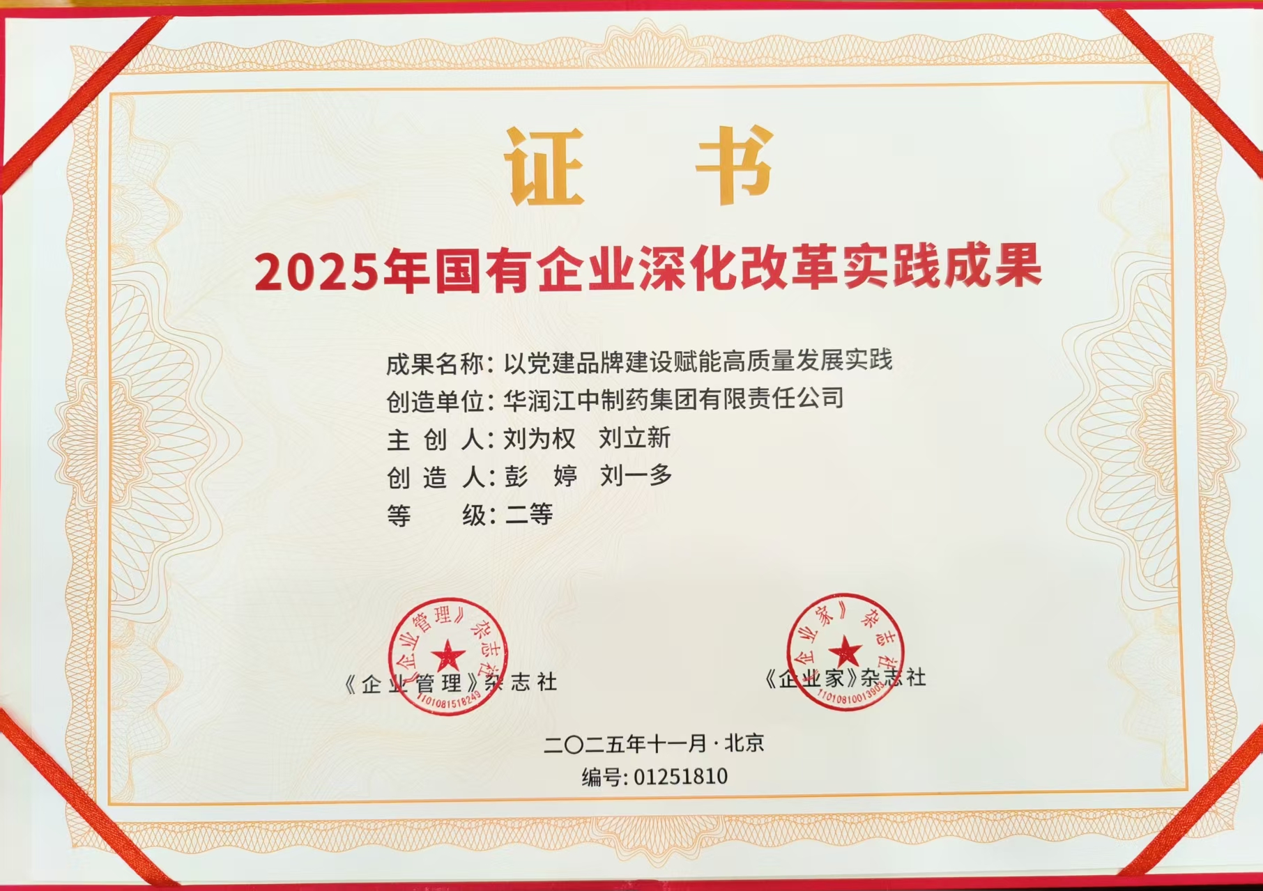 江中药业两项改革案例均获“国有企业深化改革优秀实践成果(案例)”二等奖,相关改革成果将由主办方汇编成册,向全国各行业企业推广。