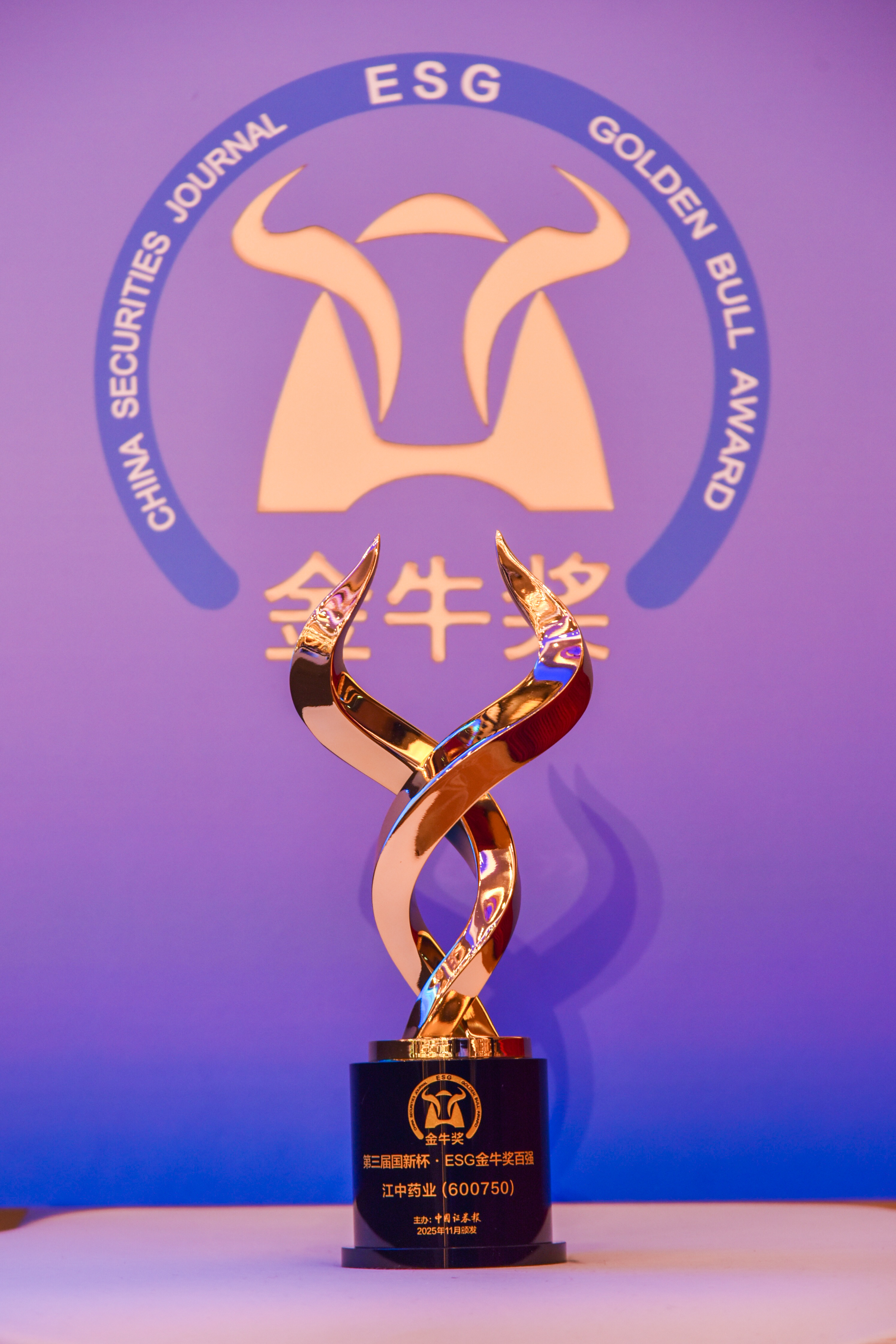 11月26日,由中国证券报、中国国新控股有限责任公司联合主办的2025金牛企业可持续发展论坛暨第三届“国新杯·ESG金牛奖”颁奖典礼在江苏苏州举行。论坛上,第三届国新杯·ESG金牛奖榜单正式揭晓,江中药业凭借在环境、社会及公司治理领域的积极表现,荣获国新杯·ESG金牛奖百强,连续三年收获ESG金牛奖相关奖项,该奖项是ESG金牛系列奖项中的核心奖项。