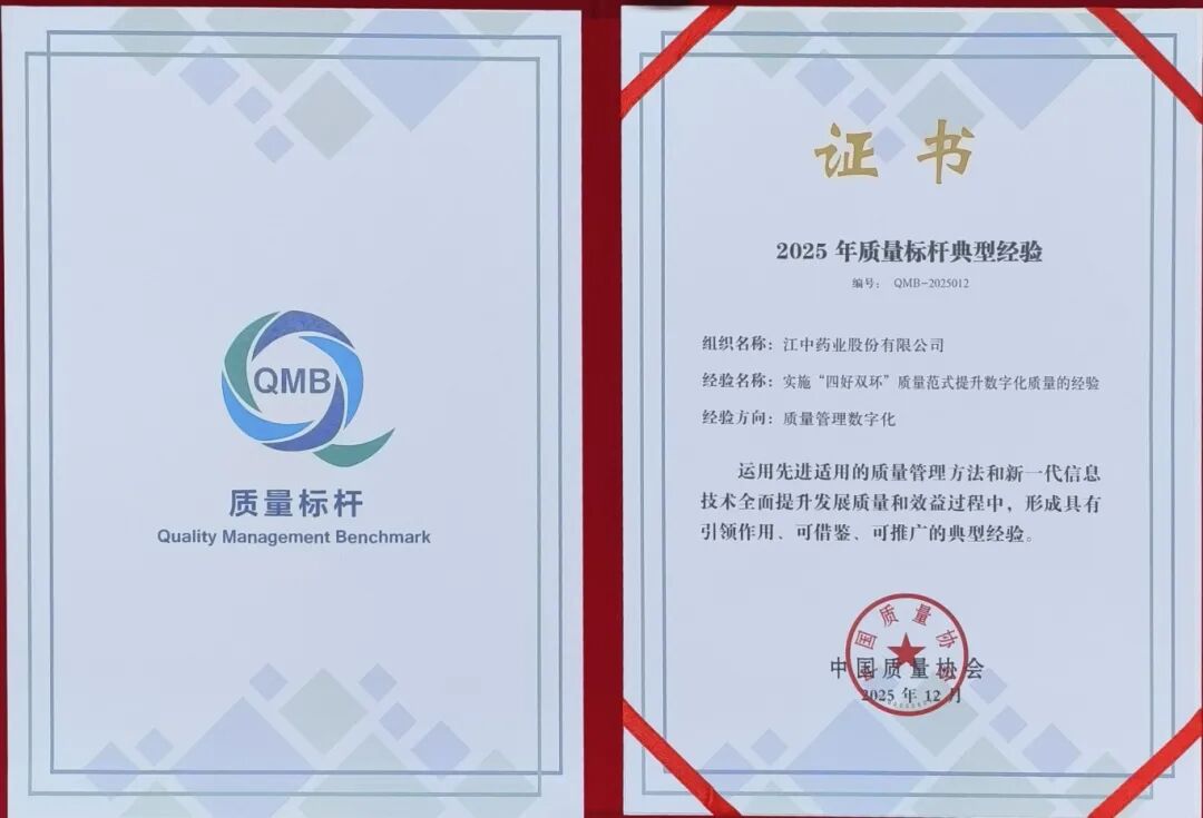 江中药业获评2025年全国质量标杆典型经验