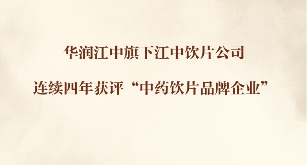 华润江中旗下江中饮片公司连续四年获评“中药饮片品牌企业”